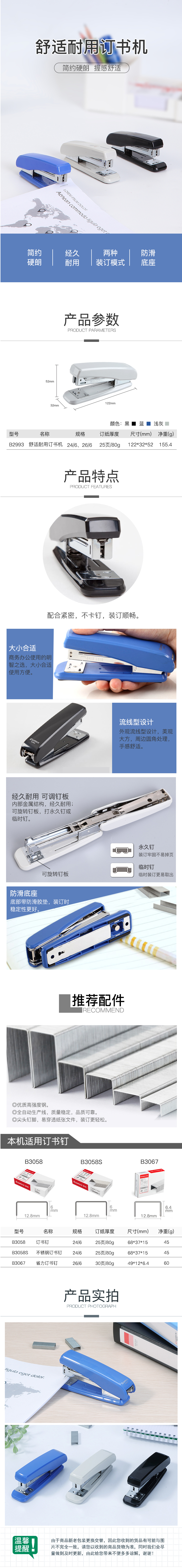 商品名称:齐心 B2993 强力耐用订书机 12#金属机