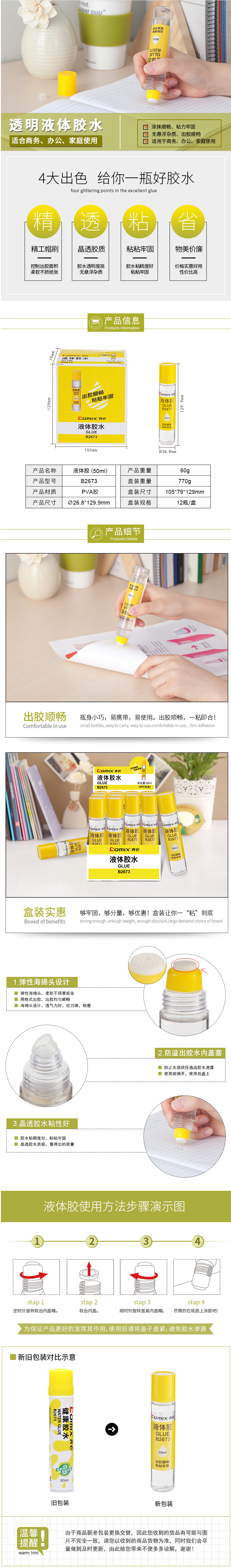 商品名称:齐心 B2673 健康胶水 50ML 海绵头
