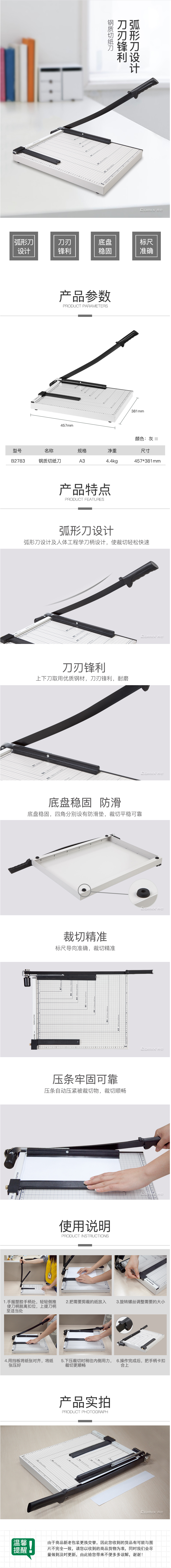 商品名称:齐心 B2783 钢质切纸刀 A3