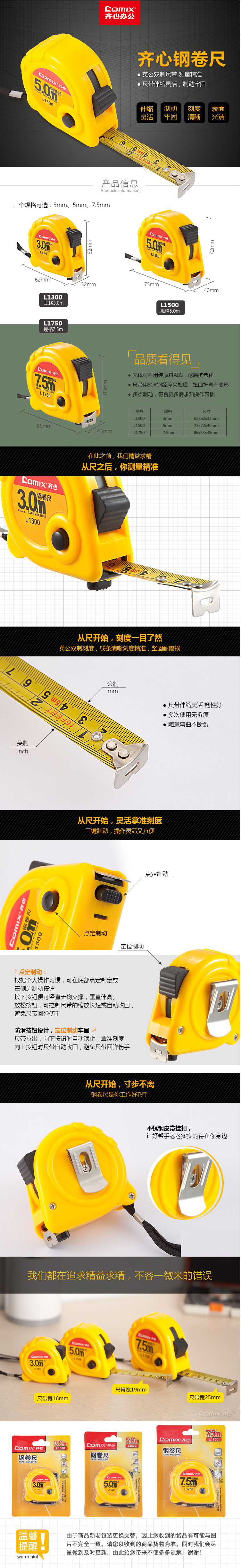 商品名称:齐心 L1750 钢卷尺 7.5m