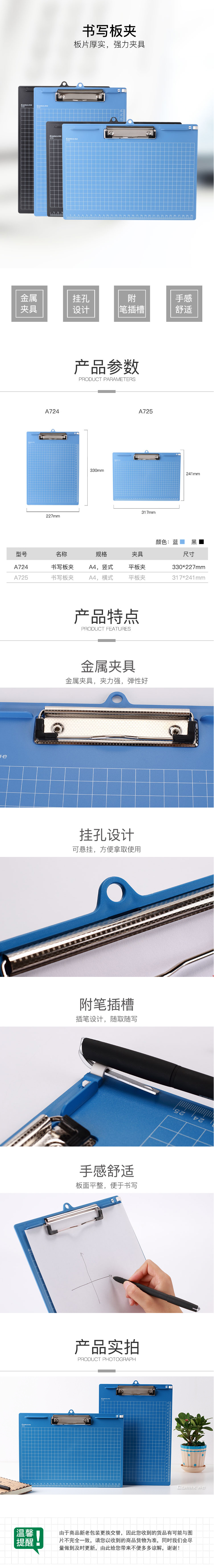 商品名称:齐心 A724 便携式 书写板夹 A4 竖式