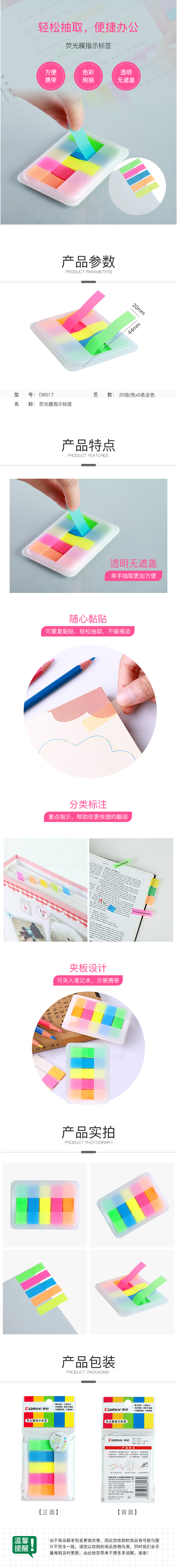 商品名称:齐心 D6017 荧彩系列标签易事贴 X5色(盒)告示贴