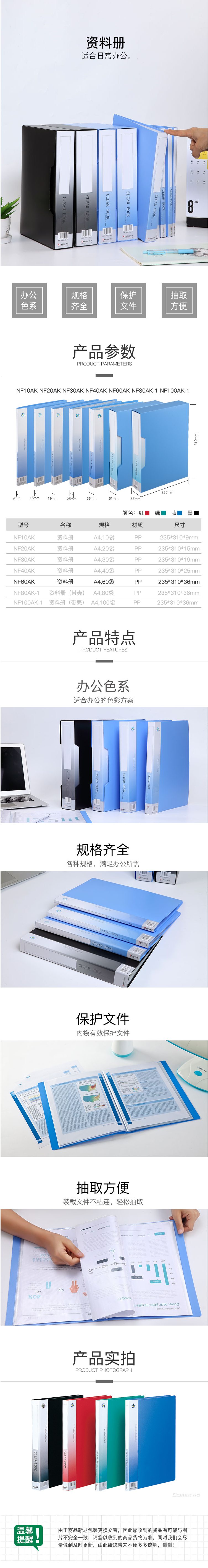 商品名称:齐心 NF60AK 办公必备资料册 A4 60袋