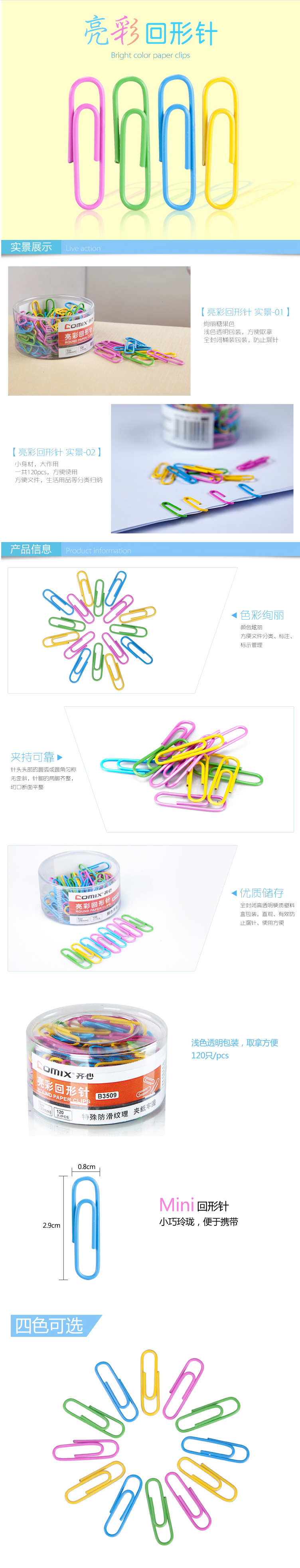商品名称:齐心 B3509 亮彩回形针