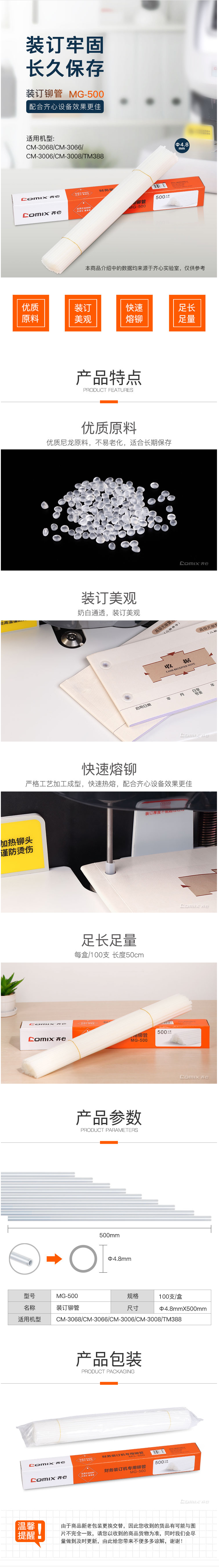 > 齐心 MG-500 财务装订机铆管 φ4.8*500mm