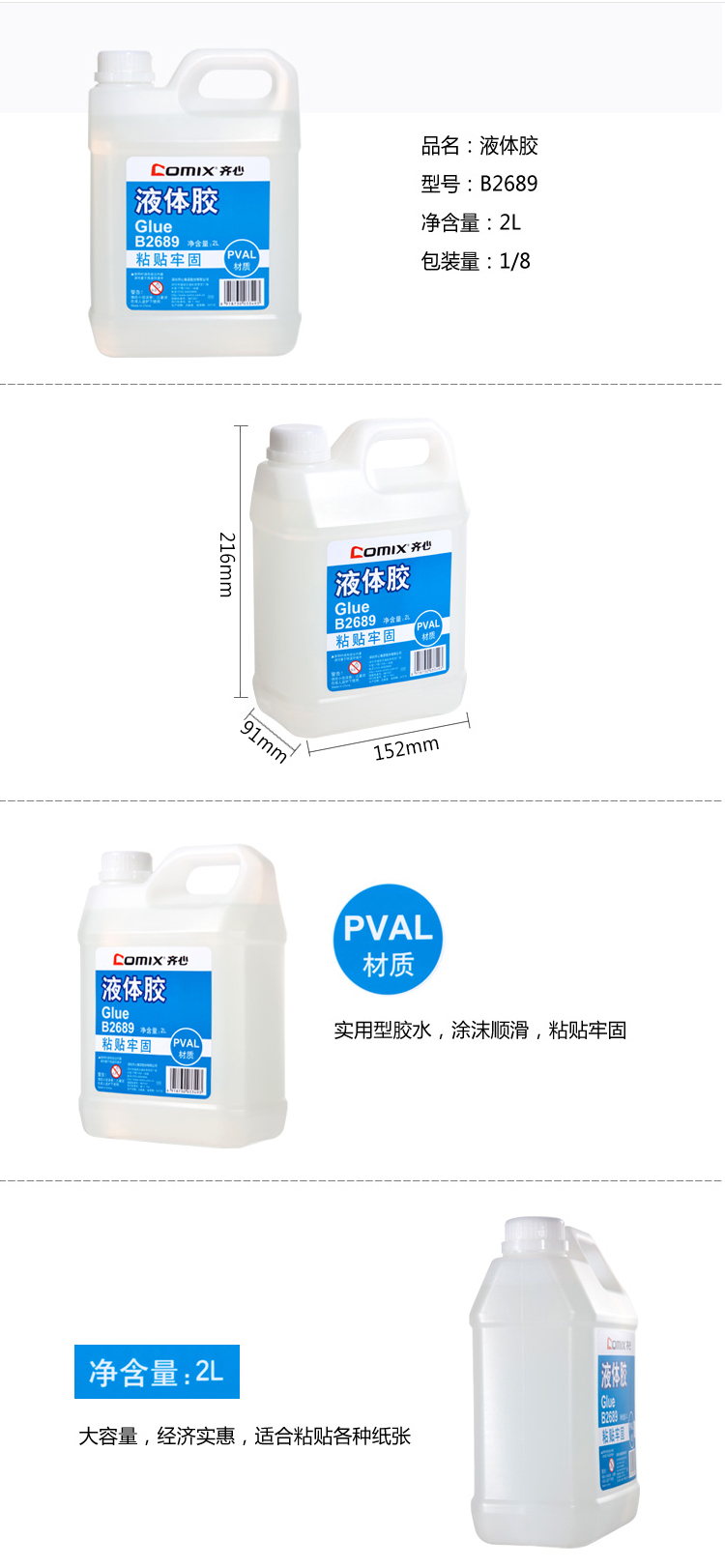 商品名称:齐心 B2689 液体胶 2L
