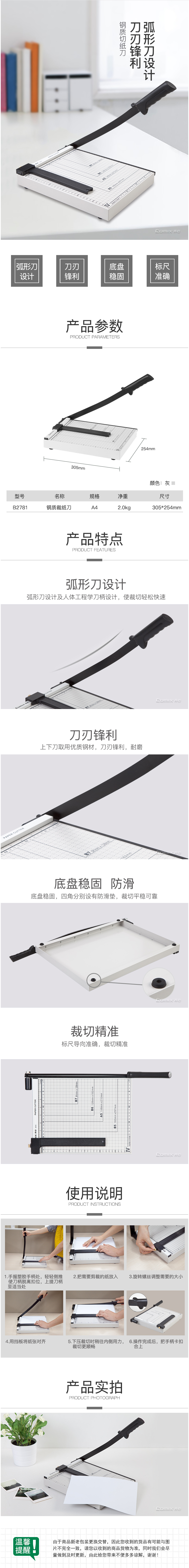 商品名称:齐心 B2781 钢质切纸刀 A4