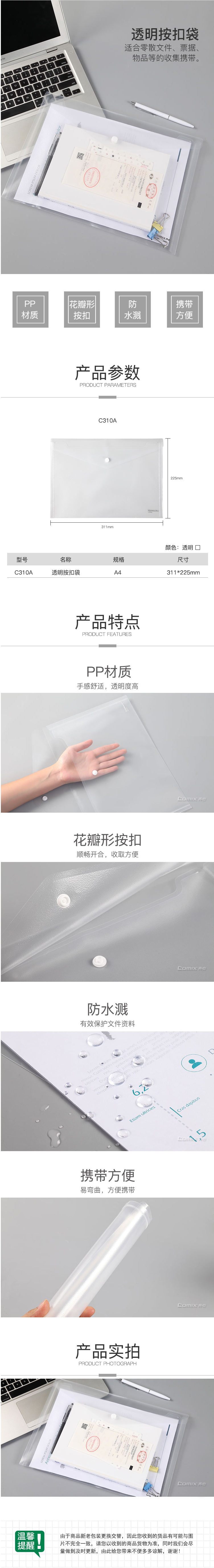 商品名称:齐心 C310A 防反光 按扣文件袋 A4 10个/套