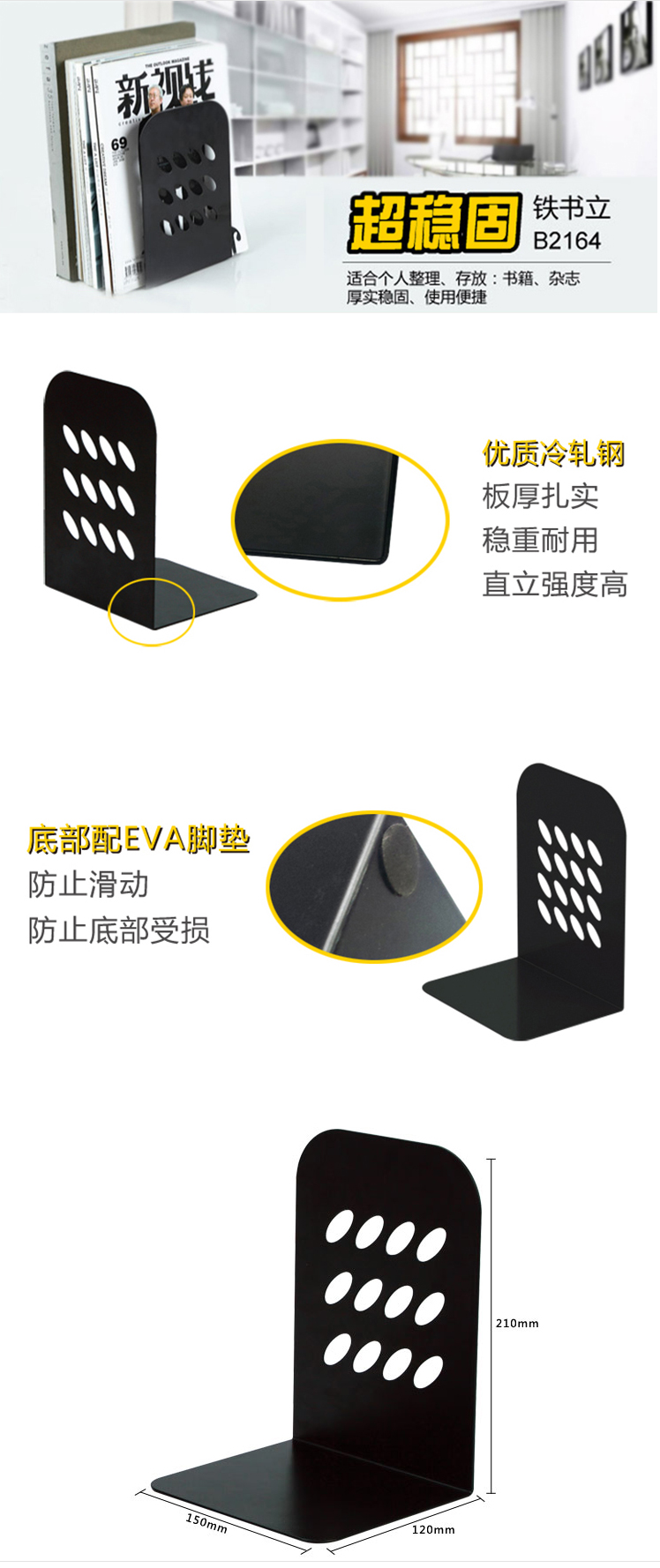 商品名称:齐心 B2164 铁书立 8.5寸超稳固(两个1套,单价为1套价格)