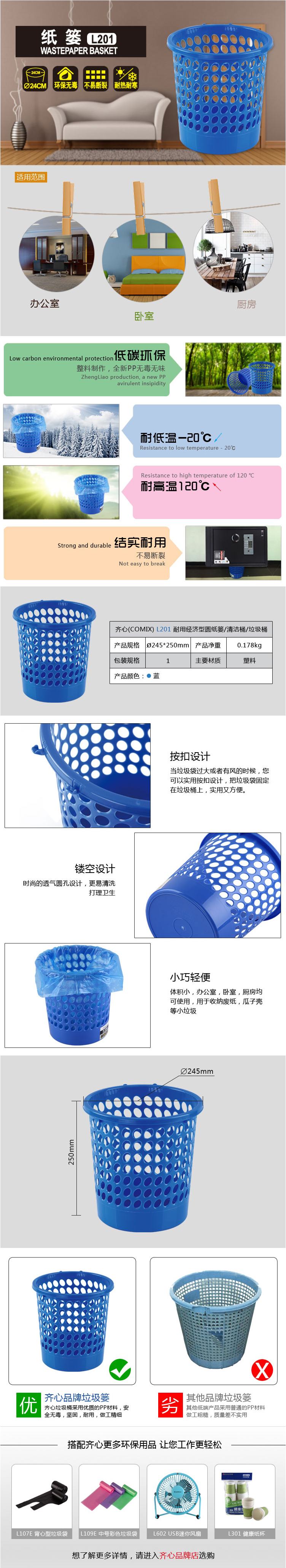 商品名称:齐心 L201 垃圾桶圆形经济型纸篓24cm