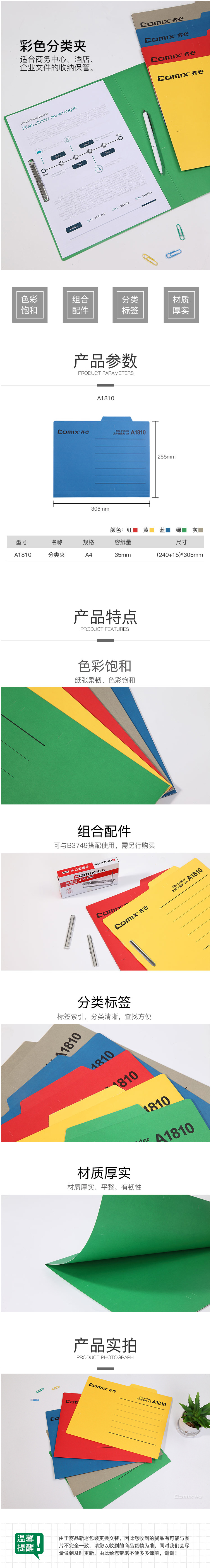 商品名称:齐心 A1810 易分类分类夹 A4 纸质 400PCS/件