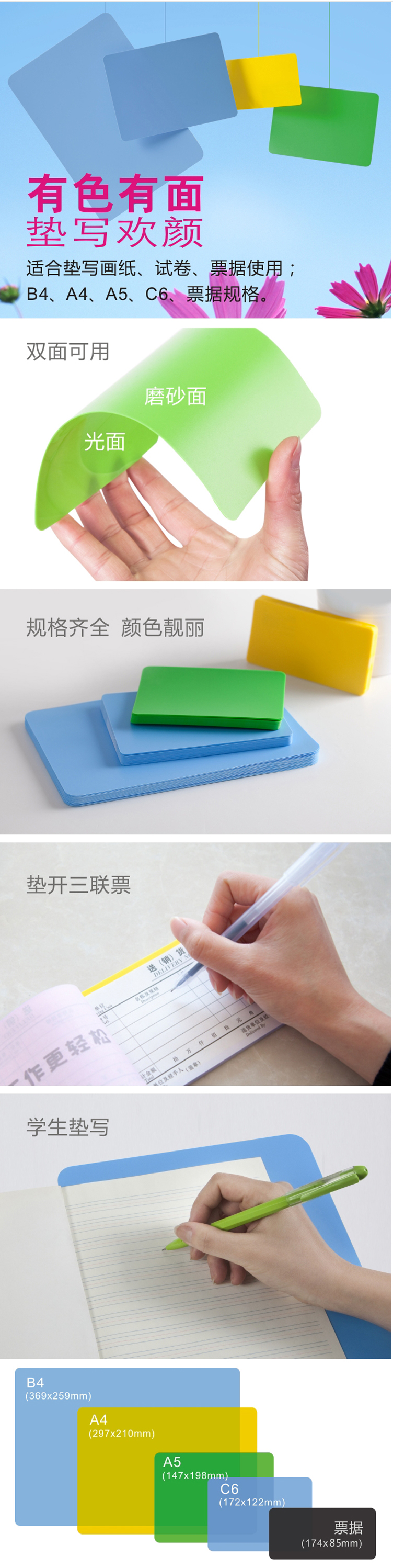 商品名称:齐心 A7771 欢颜实色复写板/垫板 票据规格