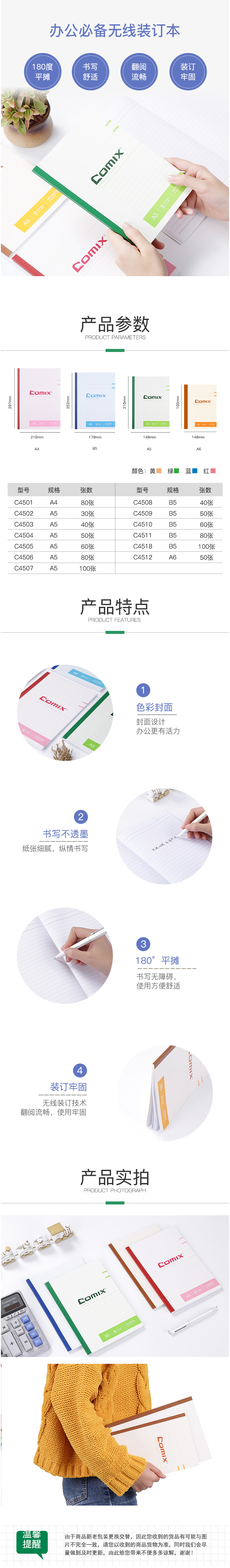 商品名称:齐心 C4512 办公必备无线装订本 A6 50张笔记本软面抄软抄本