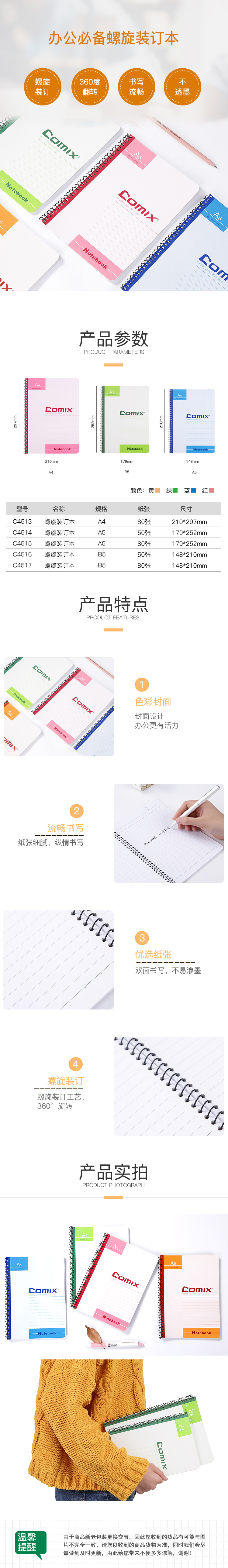 商品名称:齐心 C4513 办公必备螺旋装订本 A4 80张笔记本软抄本