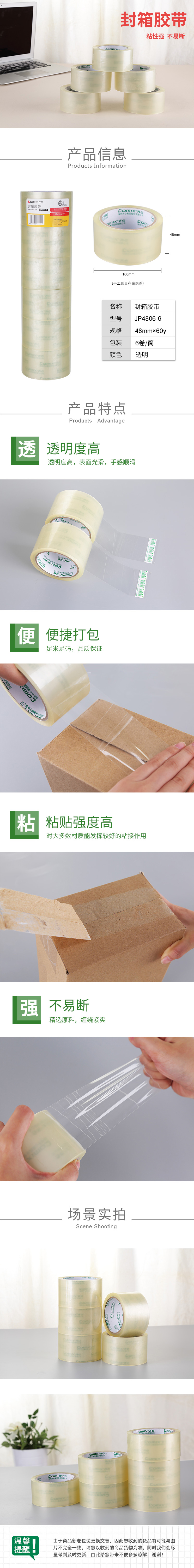 商品名称:齐心 JP4806-6 普透封箱胶带 6卷/筒 48mm*60y 6卷装