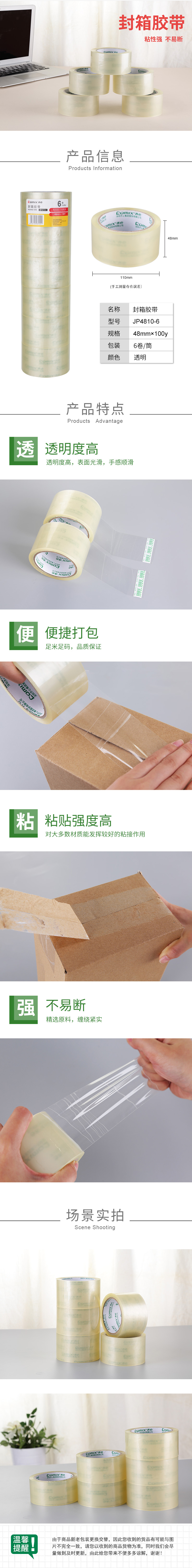 商品名称:齐心 JP4810-6 普透封箱胶带 6卷/筒 48mm*100y 6卷装