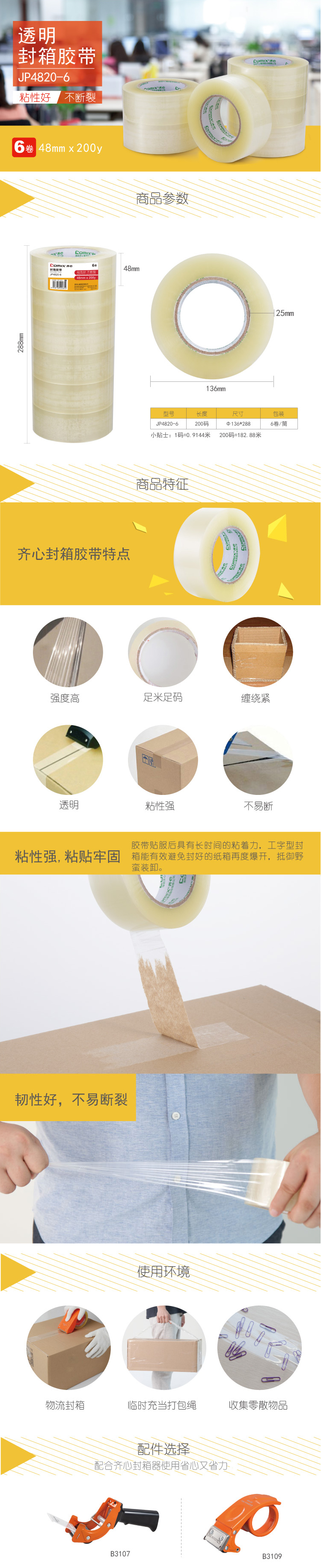 商品名称:齐心 JP4820-6 封箱胶带