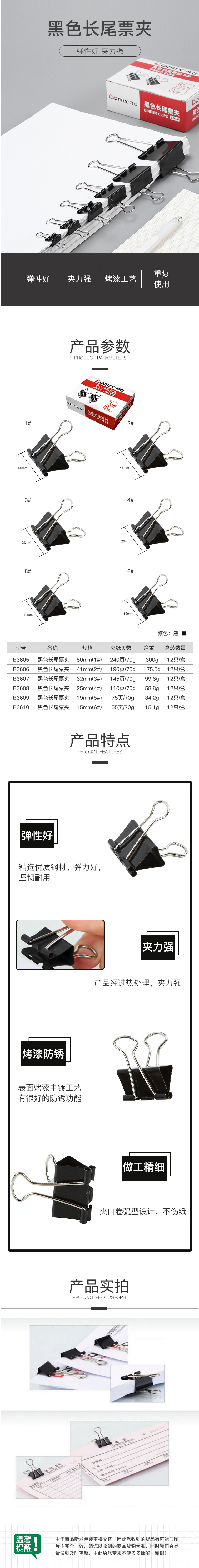 商品名称:齐心 B3610黑色长尾夹 6# 15mm 12只/盒