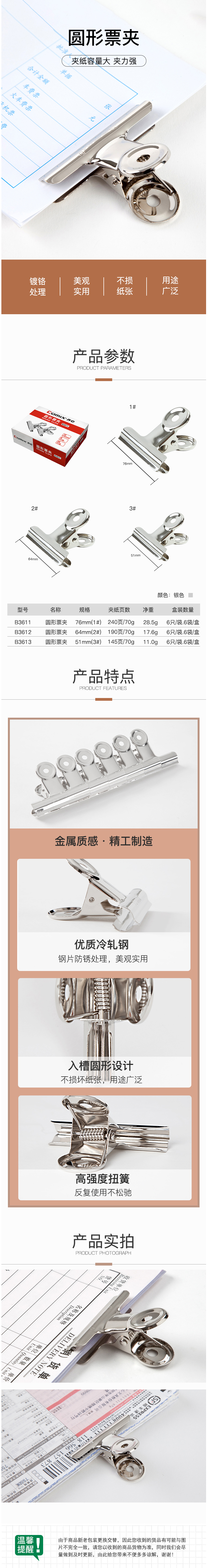 商品名称:齐心 B3611 圆形票夹/铁票夹 1# 6只/袋