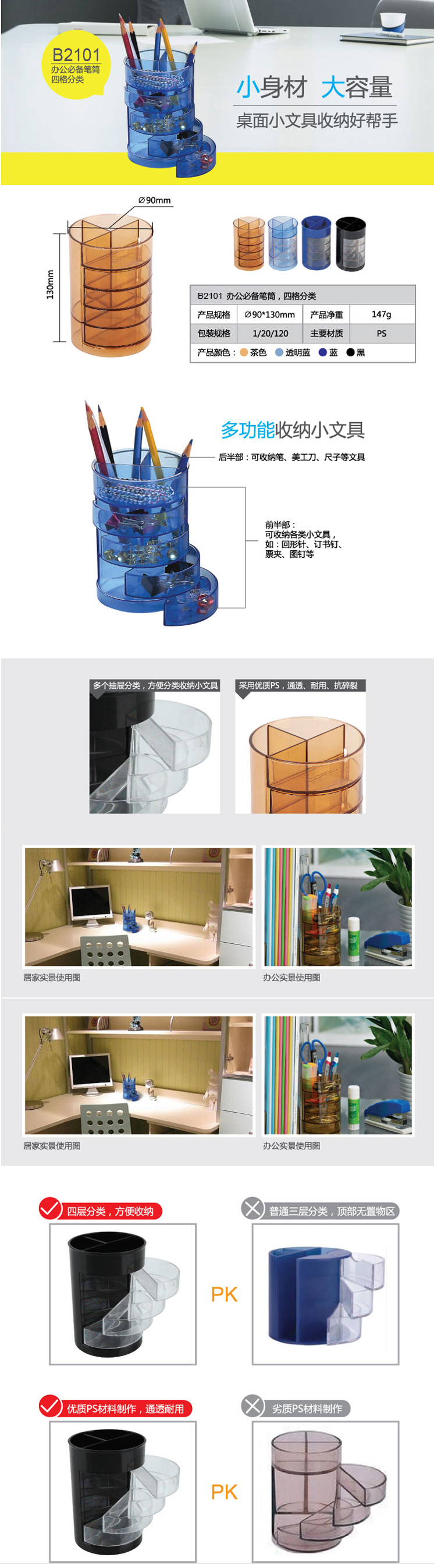 商品名称:齐心 B2101 办公笔筒 四格分类
