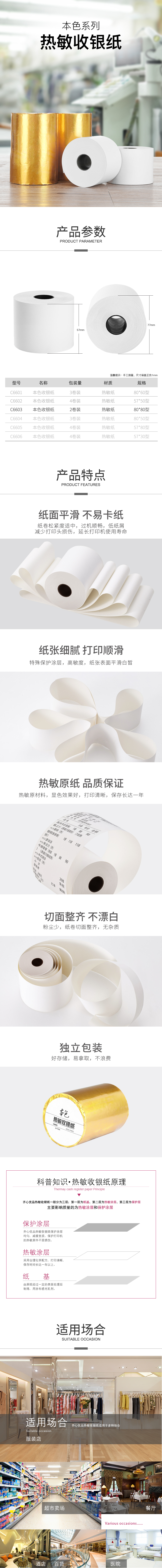 商品名称:齐心 C6605-5 本色收银纸57*80型