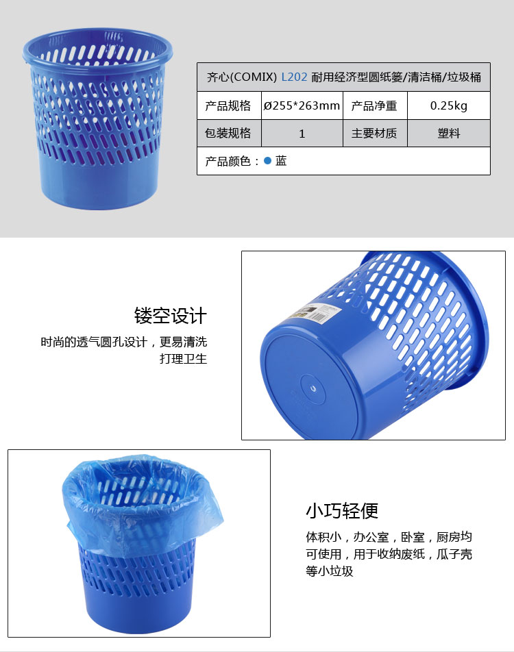 商品名称:齐心 L202 垃圾桶圆形经济型纸篓26cm